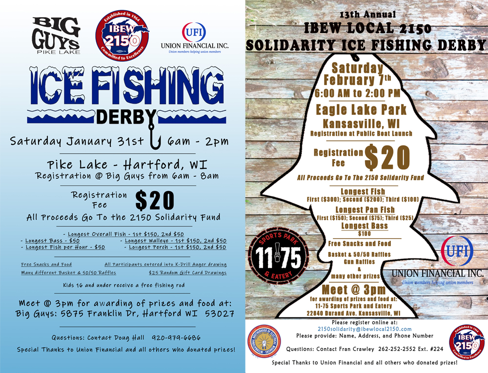 It's that time of year! The 2026 IBEW Local 2150 Ice Fishing Derbies are coming up in just a couple weeks.